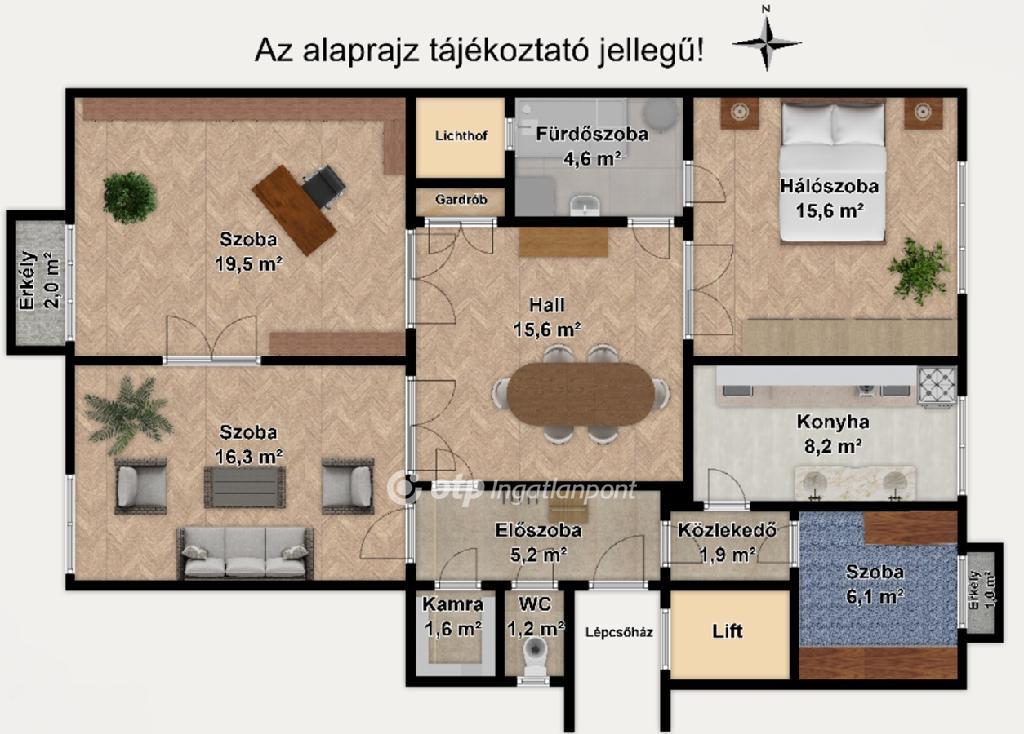 Az ingatlanból lenyűgöző panoráma nyílik a Gellért-hegyre, a Citadellára, a Szabadság-szoborra, valamint a Városházára és az Erzsébet téri óriáskerékre – ritka kilátás a város egyik legikonikusabb pontjáról! A polgári stílusú lakás tágas terekkel és nagy belmagassággal rendelkezik, így elegáns, világos otthon alakítható ki belőle. A felújítás során akár két külön lakás is könnyedén kialakítható, így rövid- és hosszú távú bérbeadásra egyaránt kiváló befektetés.