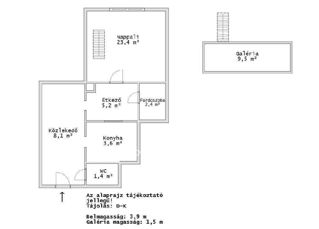 - 41 sqm (44 sqm in reality), gallery level, nearly 4 m ceiling height