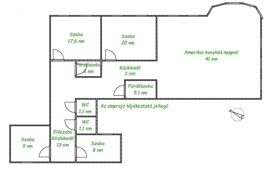 Amerikai konyhás nappali + 4 külön nyíló hálószoba