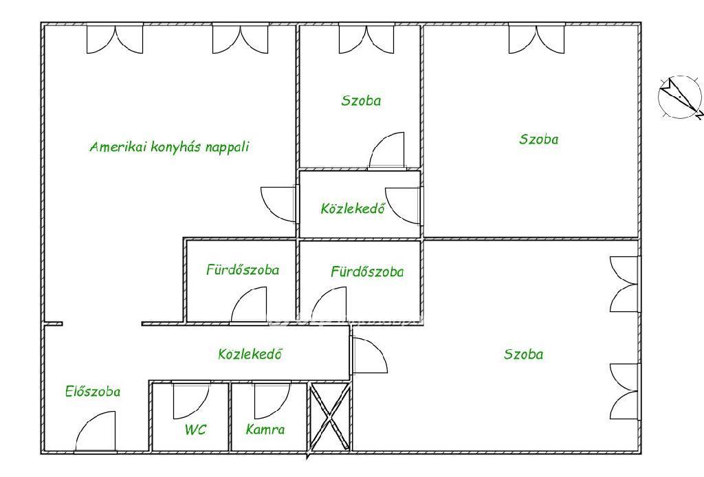 Amerikai konyhás nappali + 3 külön bejáratú hálószoba