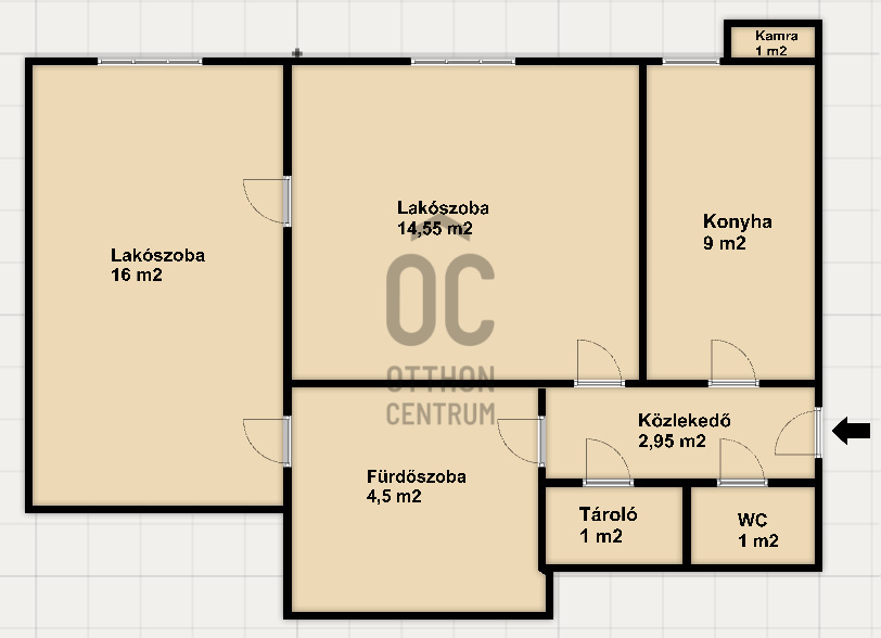 Két tágas, külön nyíló szoba – tökéletes elrendezés lakhatásra vagy kiadásra