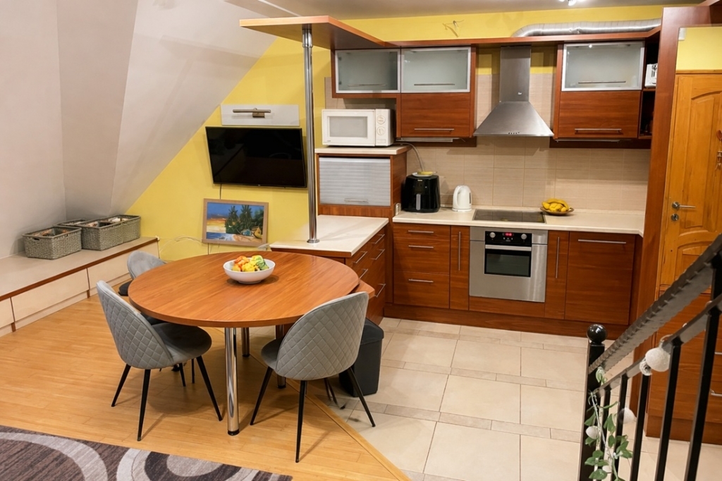 A lakás ára a képen laátható teljes bútorzatot is magában foglalja.