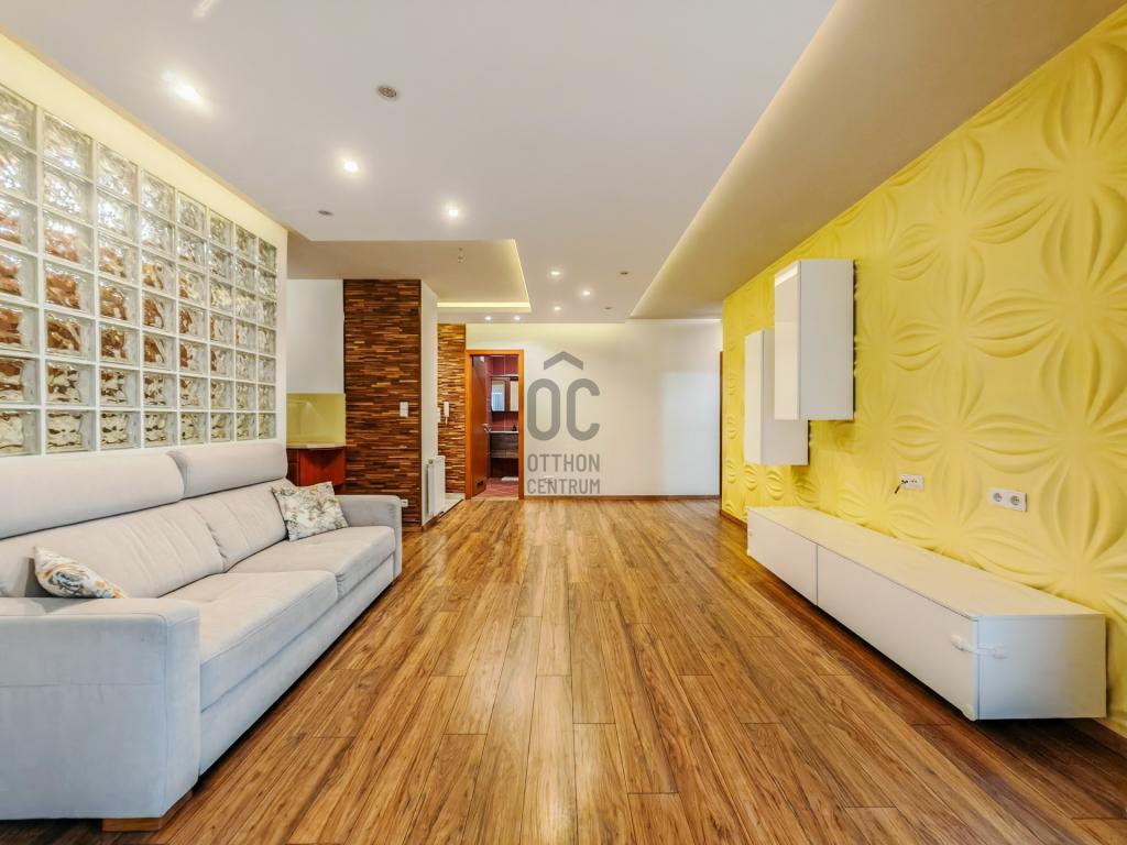 A felújítás során a lakás új, modern belső tereket kapott. A nappali mellett 3 hálószoba és 2 fürdőszoba is helyett kapott a 87 m2-es, világos lakásban.