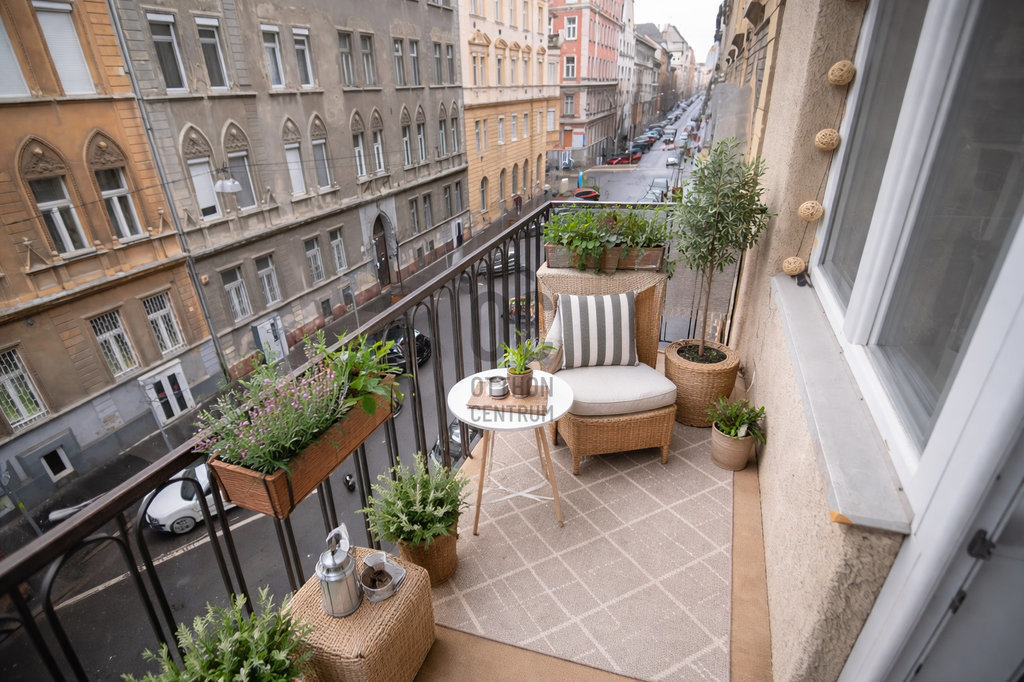 A lakás tágas, világos terekkel rendelkezik, utcára néző ablakai rengeteg természetes fényt engednek be, a magas belmagasság pedig galériázási lehetőséget biztosít. Az eredeti, klasszikus ajtók megőrizték a nagypolgári hangulatot, a parkolás pedig a lakók számára ingyenes.