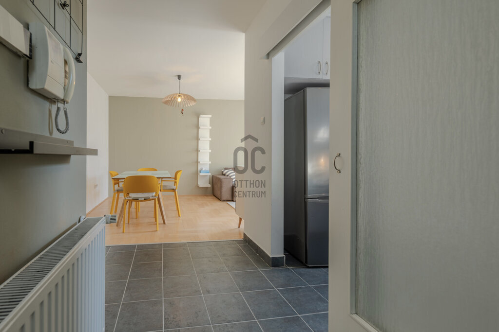 Elrendezés: Tágas, amerikai konyhás nappali + 2 külön nyíló szoba.