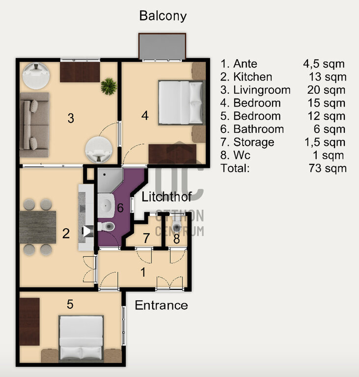 73m2+2m2 erkély, nyugati tájolás