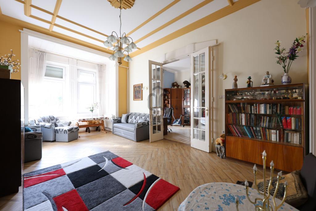 Eladásra kínálunk egy nagypolgári hangulatú, 117 m²-es, négy szobás saroklakást Budapest szívében, a 7. kerületi Középső-Erzsébetvárosban, a Rákóczi úton, kivételes elhelyezkedéssel – a Blaha Lujza tér és a Keleti pályaudvar között, liftes, rendezett társasházban.