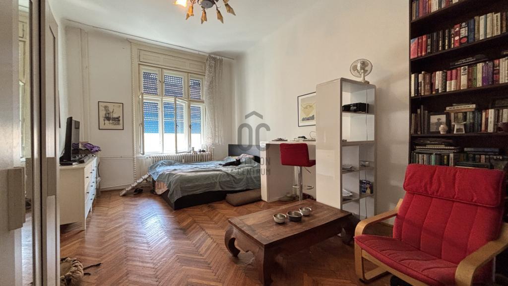 Eladó Budapest szívében, a Rákóczi úton, egy 82 m²-es, 3 szobás, kiváló állapotú társasházi lakás. Bár az épület a forgalmas főúton található, az ablakok egy mellékutcára néznek.