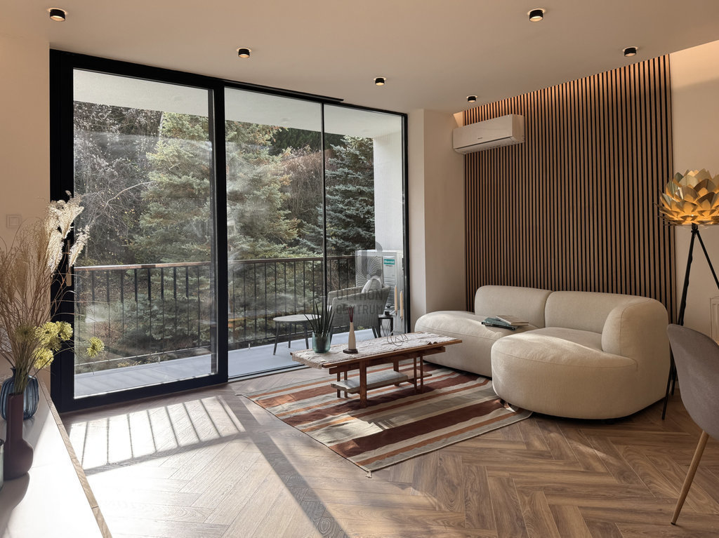 A nappaliban ugyanakkor megmaradtak a közel 3 méter magas, kétszárnyú fa ajtók, megőrizve így nagypolgári hangulatot.