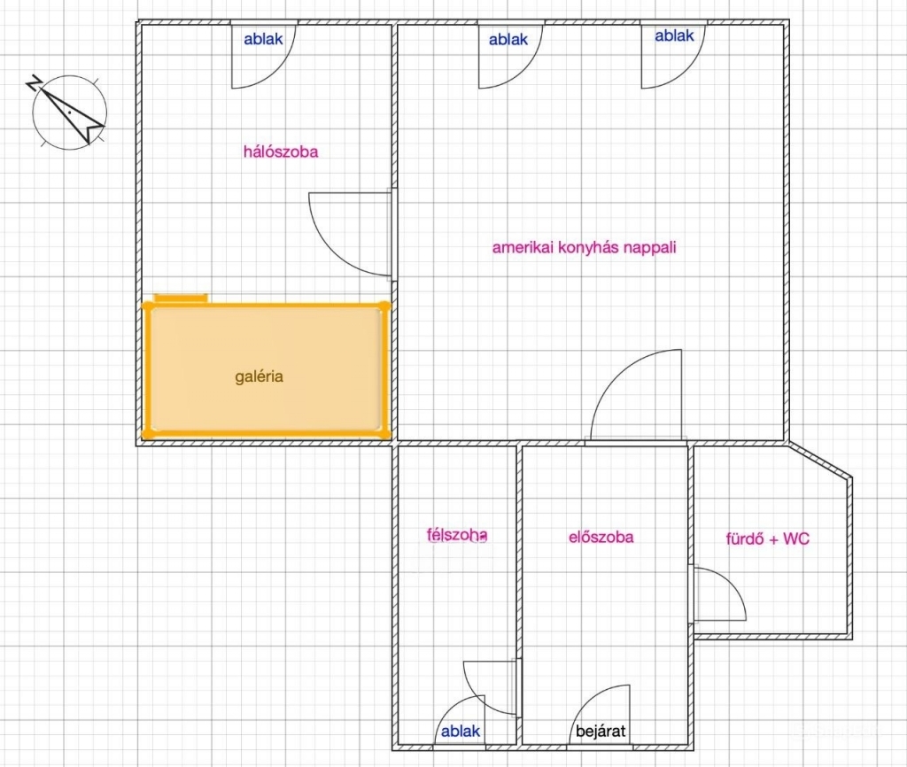 A lakás tulajdoni lap szerint 73 m², a galéria növeli a kihasználhatóságot, 6,7 m².