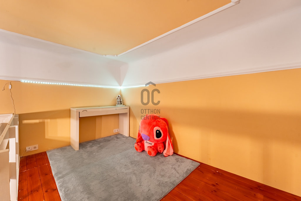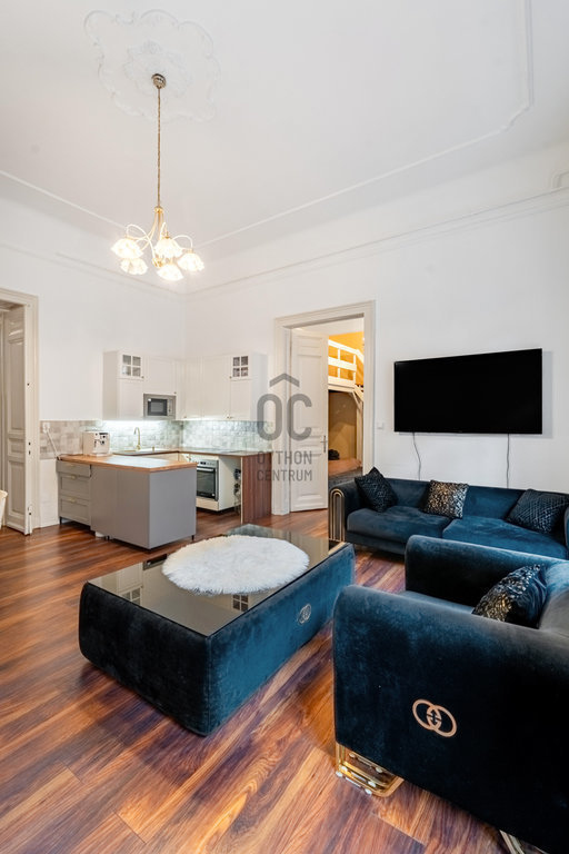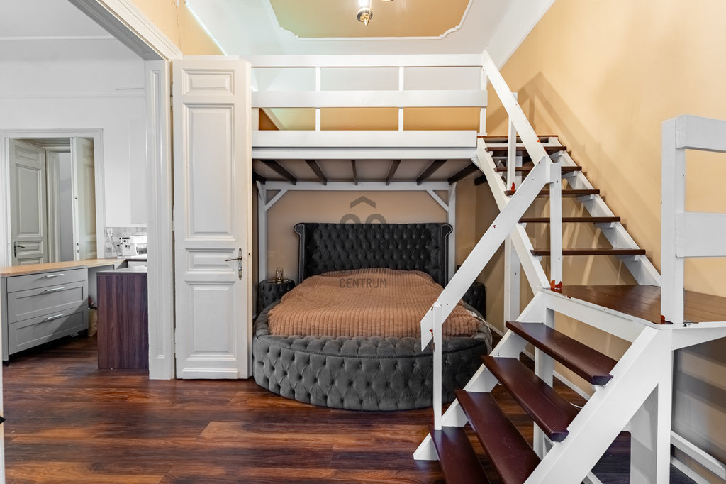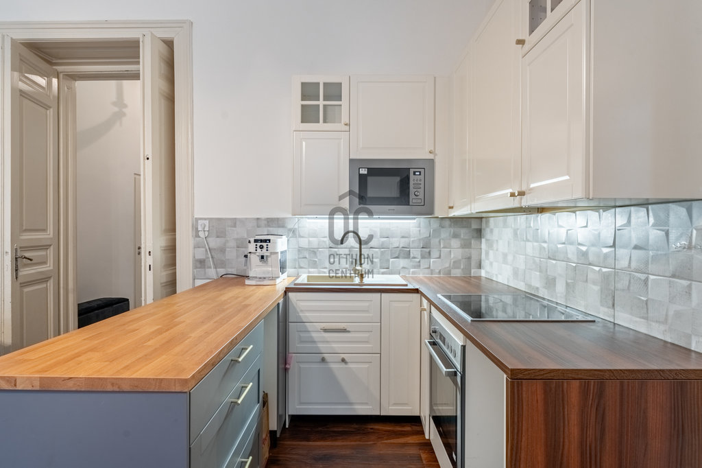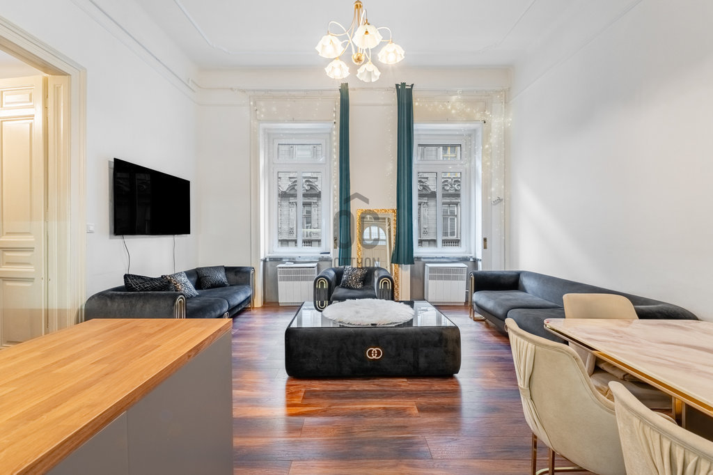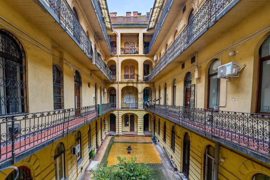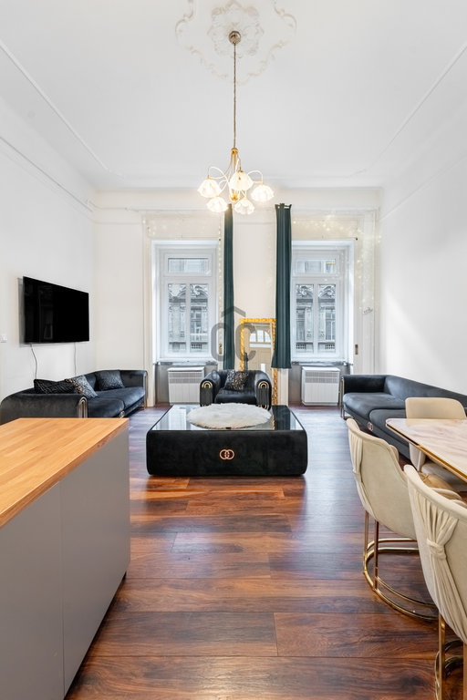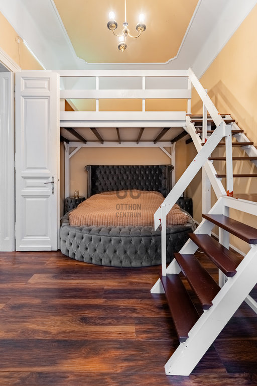 Eladó egy 73 m²-es, igényesen felújított lakás a VI. és VII. kerület határán, tágas terekkel, amerikai konyhás nappalival, 4 méteres belmagassággal és galériás hálószobával. A lakás tulajdoni lap szerint 73 m², a galéria további 6,7 m². A bejárattól jobb kézre van még egy hosszúkás, 7 m²-es tároló helyiség, ami a fotókon nem szerepel.