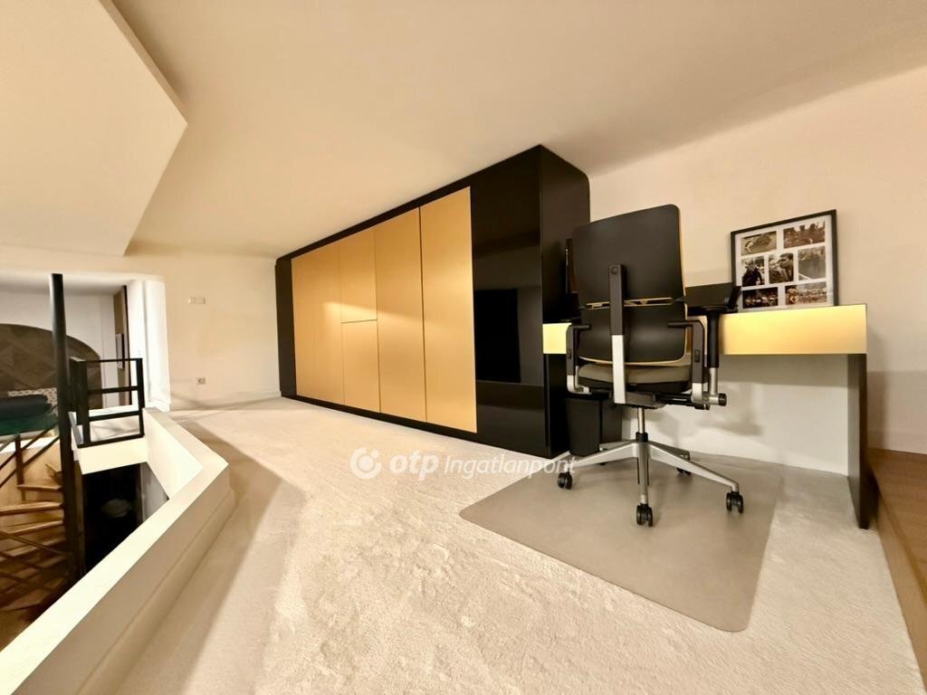 Az ingatlan két kisebb lakás összenyitásával, statikai terv alapján került kialakításra, így elrendezése különleges és rendkívül tágas. A megfelelő belmagasságnak köszönhetően egy 27 nm-es állógaléria növeli a hasznos alapterületet.
