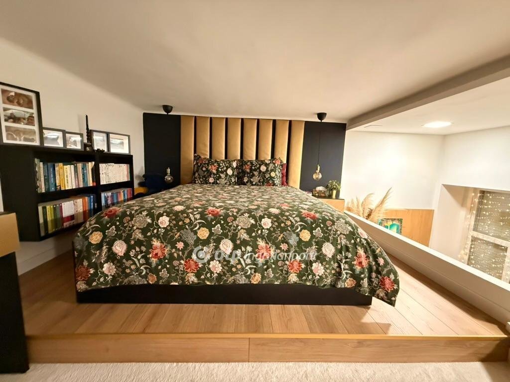 The property was created by merging two smaller apartments based on structural plans, resulting in a unique and spacious layout. A 27 sqm standing gallery significantly increases the usable living space.