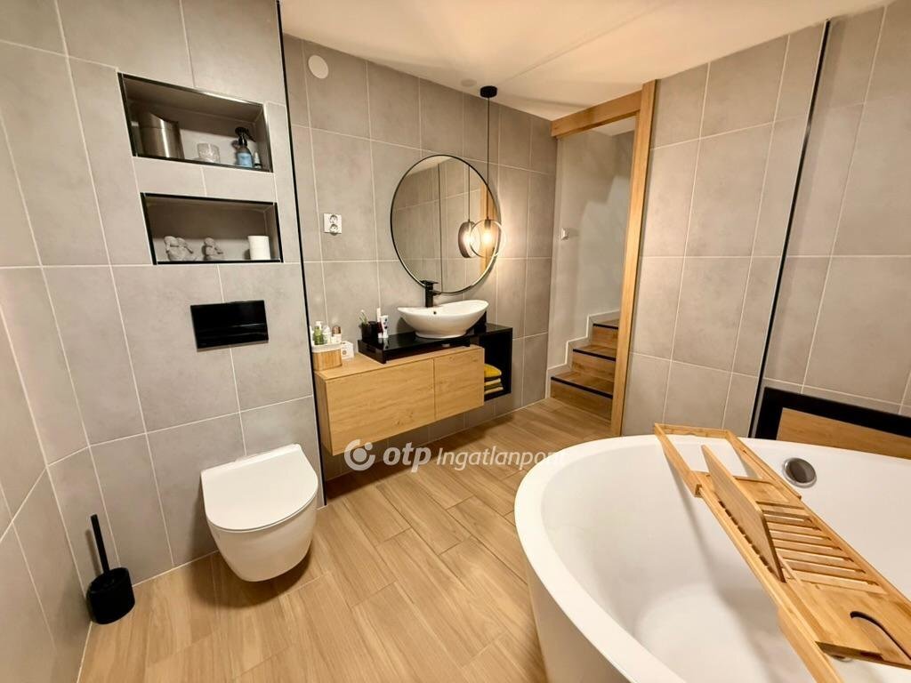 - Térben álló kád és külön zuhany a fürdőszobában
