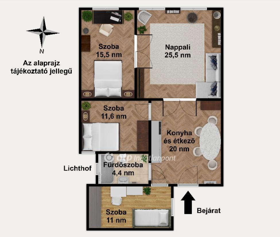 A lakás kiváló elrendezésének köszönhetően három külön nyíló hálószoba, egy világos nappali és egy amerikai konyhás étkező biztosítja az otthonosságot és a kényelmet. Kettős tájolásának köszönhetően mind az utcai, mind az udvari nézetű ablakok egész nap kellemes világosságot biztosítanak, így a lakás minden pontját természetes fény járja át. A fűtés kombi cirkó rendszerrel megoldott, a hőleadás radiátorokon keresztül történik. Az ingatlan állapota lehetővé teszi akár az azonnali költözést is.