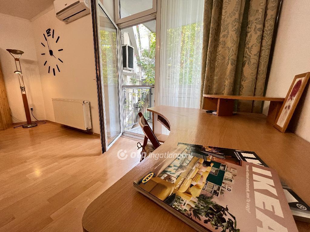 Világos, harmonikus terek és zöldre néző ablakok jellemzik ezt az amerikai konyhás nappalival rendelkező lakást. Kiváló választás mindazoknak, akik a város szívében keresnek nyugalmat és természetközeli otthont akár saját maguk vagy bérlőik számára.
