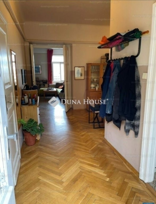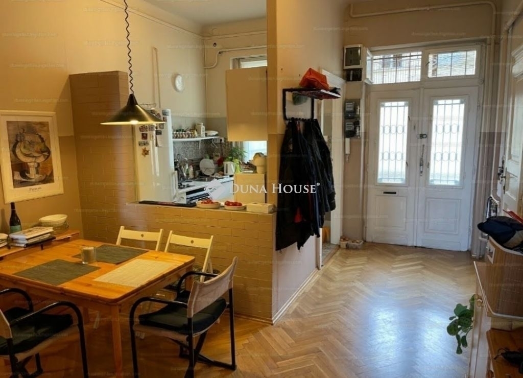 ,,Budapest VIII. kerületében, a Tisztviselőtelep frekventált és rendkívül kedvelt részén eladó egy 95 m²-es, körbejárható, tágas terekkel rendelkező polgári lakás. Az ingatlan egy Hültl Dezső építész által tervezett, a 20-as években épült, masszív 60 cm vastag falakkal rendelkező liftes társasházban található, amely télen jól tartja a meleget, nyáron pedig kellemesen hűvös marad.A lakás elrendezése praktikus és élhető: két nagy szoba, egy fél szoba, étkezős konyha, fürdőszoba és külön WC található benne. A 3,60 m-es belmagasság tovább növeli a tágasság érzetét, így akár iroda, ügyvédi rendelő vagy orvosi praxis kialakítására is kiválóan alkalmas (a házban több hasonló működik is).Az ingatlan egy ötszintes, liftes épület magasabb szintjén helyezkedik el, ÉNY-i fekvéssel. Fő ablakai az utcára néznek, míg a konyha és az előszoba a társasház udvarára és a körfolyosóra nyílik, így a lakás a városi környezet ellenére kifejezetten csendes.A fűtés gázkonvektorral, a meleg víz gázkazánnal működik; minden közmű egyedi mérős, a közös költség 25.000 Ft. A környék infrastruktúrája kiváló: több egyetem, bevásárlási lehetőség, valamint az 1-es villamos és a Népligeti metróállomás néhány perc sétával elérhető.A környéken a parkolás rendkívül kedvező, könnyen találni szabad helyet, ami nagy előnyt jelent a belvároshoz közeli elhelyezkedés mellett.A lakás hitelre is megvásárolható, a finanszírozásban ingyenes tanácsadással segítjük a vevőket.Kiváló elhelyezkedésű, jól alakítható, polgári hangulatú lakás akár otthonnak, akár vállalkozásnak.