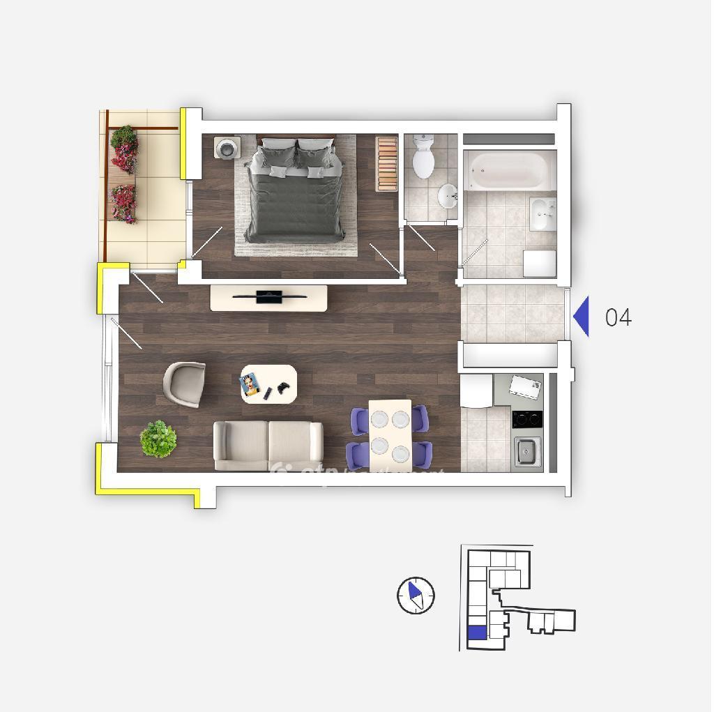 A lakások AMERIKAI KONYHÁS NAPPALIVAL és TERASSZAL/ERKÉLLYEL rendelkezik.