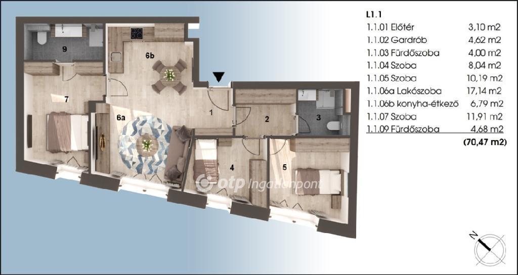 Az eladásra kínált ingatlanok 30,1 nm-100 nm közötti méretben épülnek, egy 6 emeletes, 16 lakásos házban részben erkéllyel/terasszal.