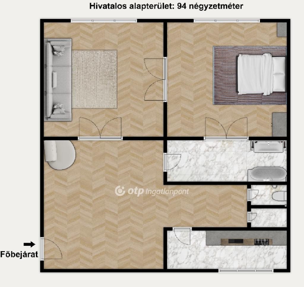 Elosztás: jelenleg 2 szoba, de 3 szobássá alakítható