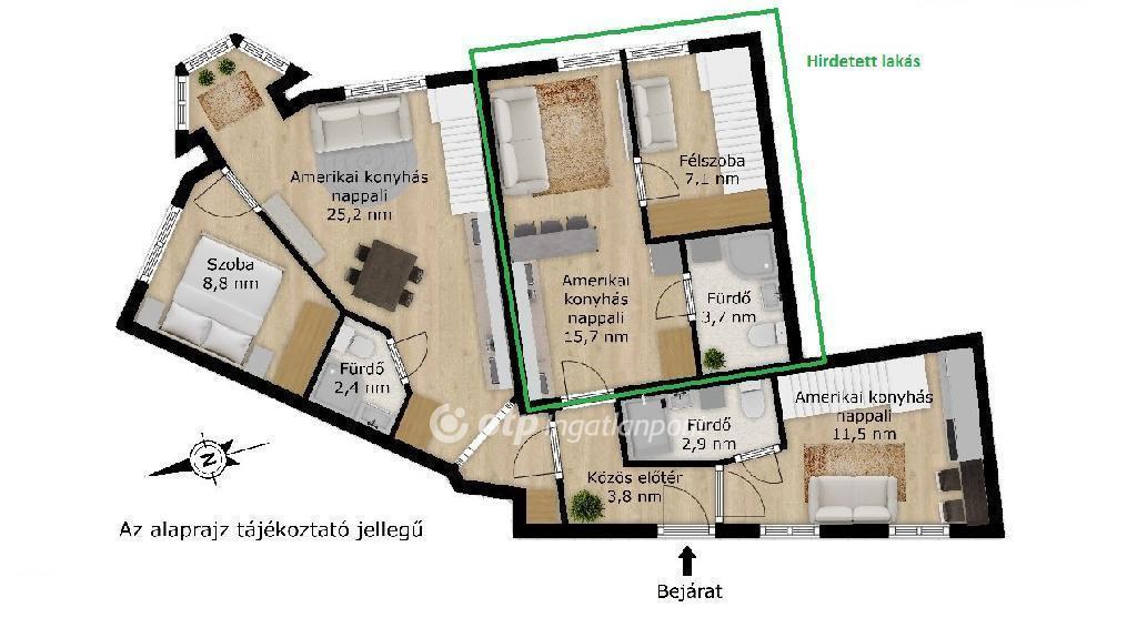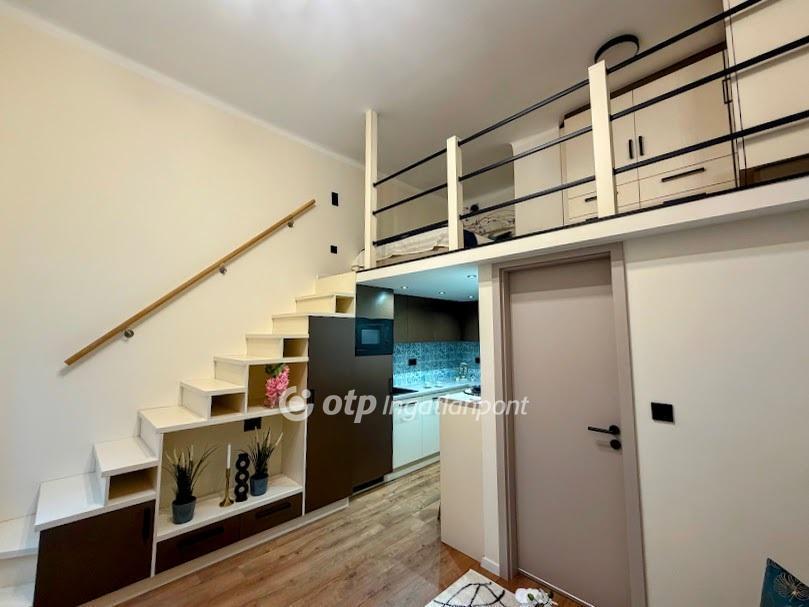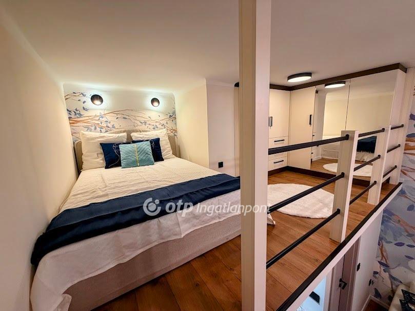 Az ingatlan teljes körűen felújított, modern kialakítású terekkel rendelkezik, design bútorokkal berendezve. A bejáraton túl egy 3,8 nm-es, közös használatú előtérből nyílik a lakás. A nagy ablakoknak és a keleti tájolásnak köszönhetően rendkívül világos. A gépesített konyha a mindennapi használatot maximálisan kiszolgálja, a fűtésről és hűtésről korszerű hűtő-fűtő klíma gondoskodik. A vadonatúj ajtók, valamint a hő- és hangszigetelt, nyílászárók nyugodt, komfortos lakókörnyezetet és napfényes belsőt teremtenek a belvárosi elhelyezkedés ellenére is. A kisebbik szobában a fürdőszoba felett egy hálóként funkcionáló, 170 cm magas, 7 nm-es gyönyörű galéria került kialakításra.