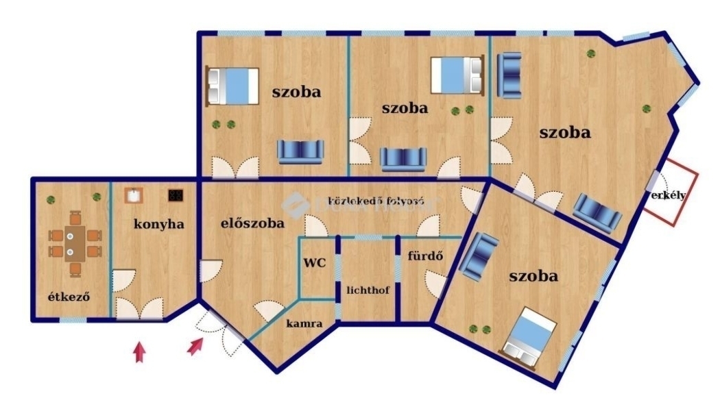 - 4 impozáns méretű, napfényes szoba (36 nm, 32 nm, 30 nm, 29 nm)
