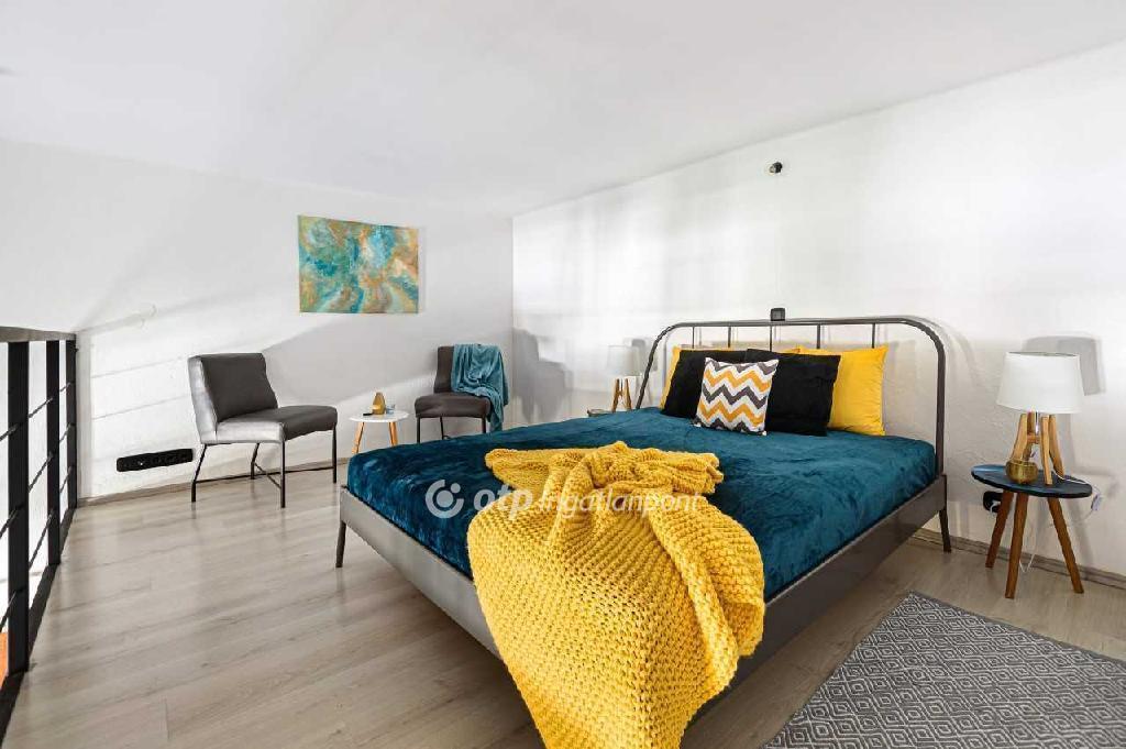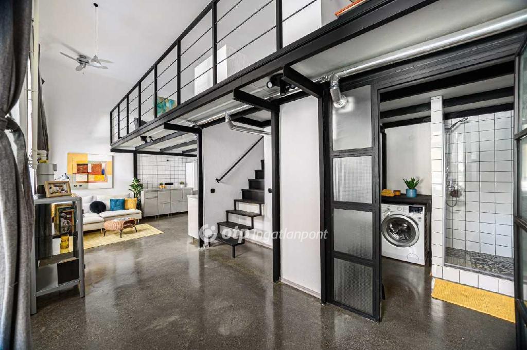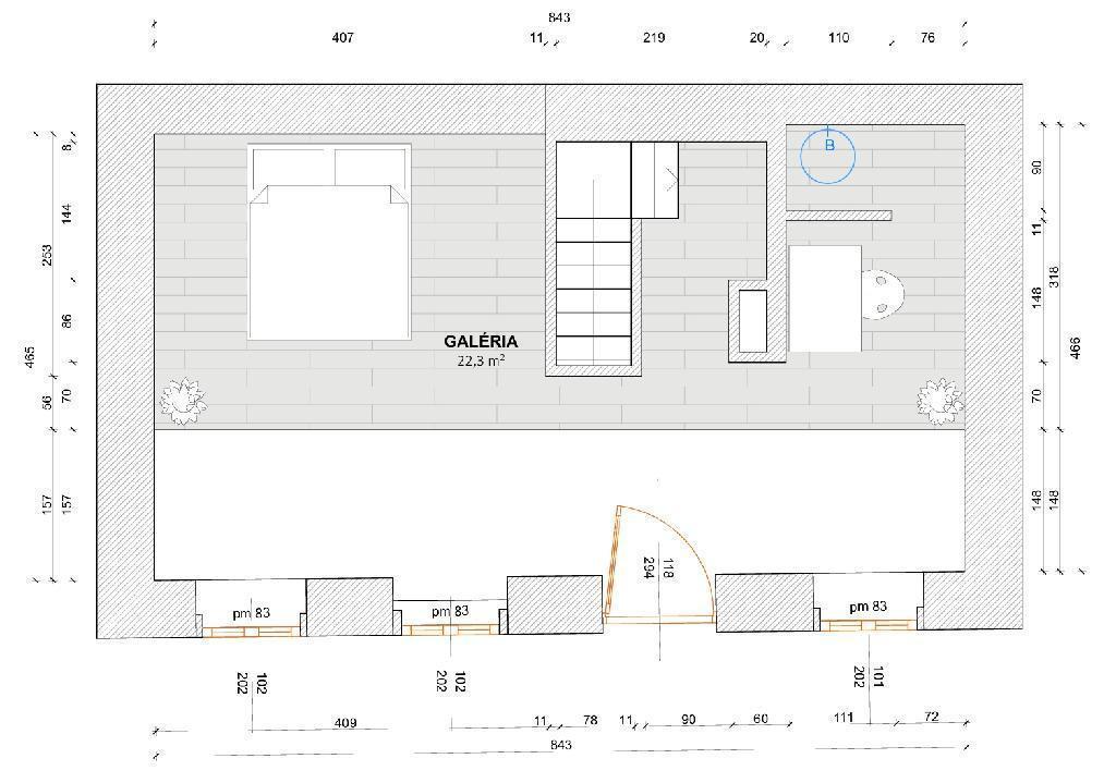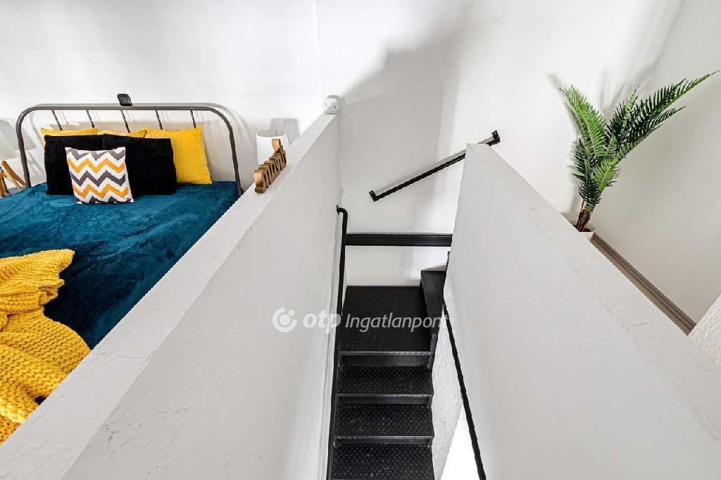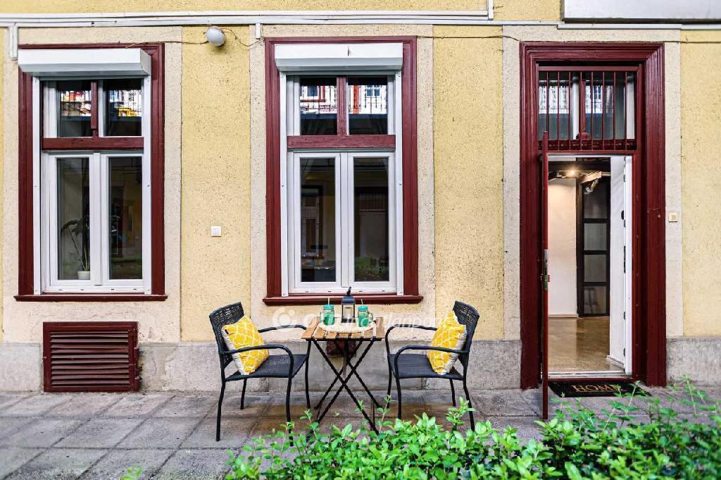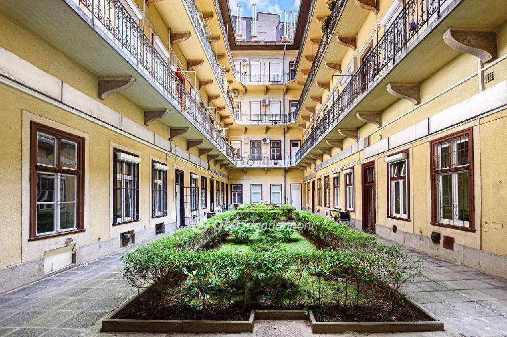 Elrendezés: A két szintes (földszint 37 nm, galéria 21 nm) lakás a csendes, zöld belső udvarra néz. A hangulatos udvaron reggeli kávé vagy délutáni ital is kellemesen eltölthető.