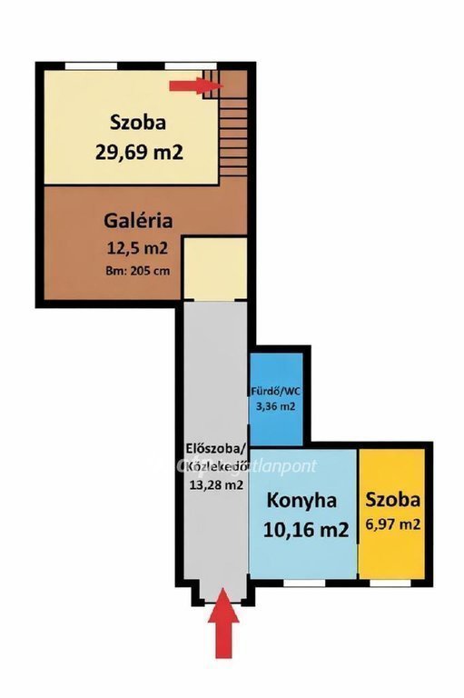 A tulajdoni lapon 63 nm szerepel, a valós alapterület azonban kb. 78 nm, köszönhetően a praktikus galériás kialakításnak.