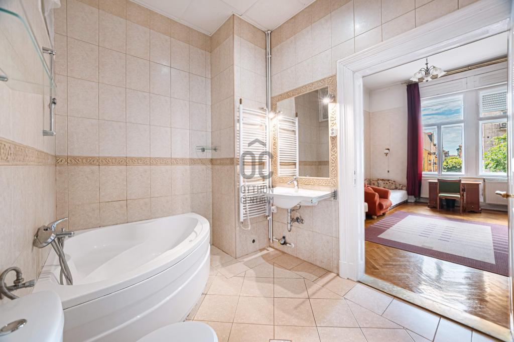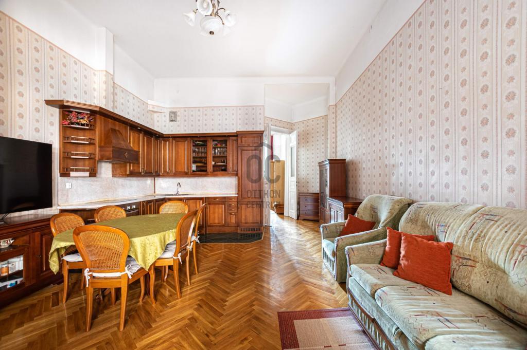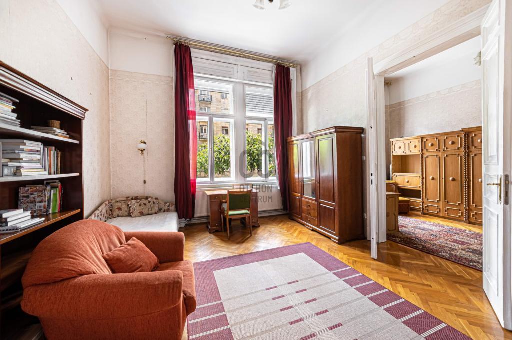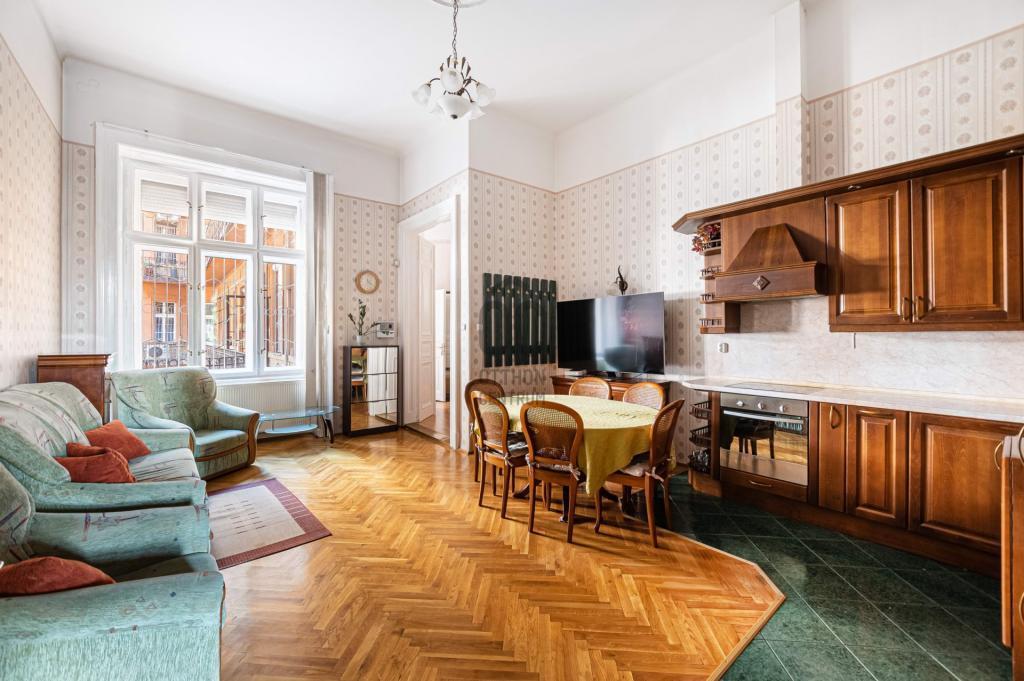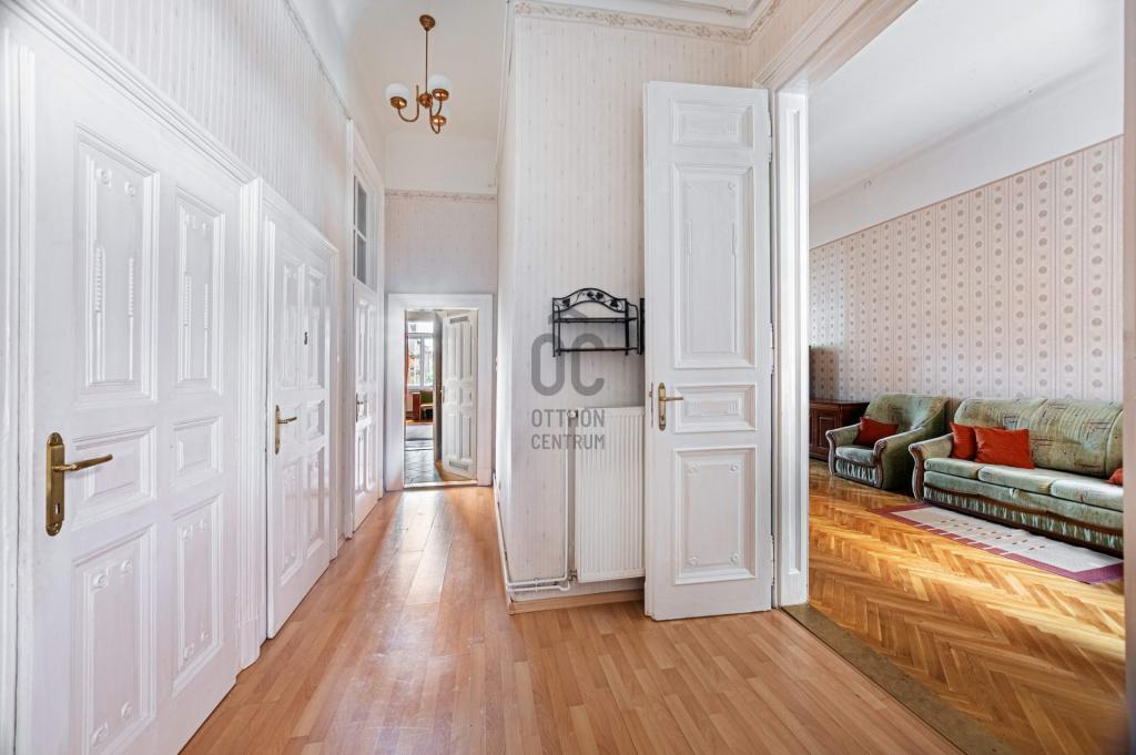 Budapest VIII. kerületében, a Semmelweis Klinikák és Corvin-negyed között, egy 1898-ban épült, karbantartott ház 1. emeletén, DNY-i tájolású, 127 m² alapterületű, 3 szobás+ 1 félszobás, amerikai konyhás nappalis, ablakos spájzzal, tágas fürdőszobával és külön WC-vel rendelkező, világos, jó állapotú lakás eladó.