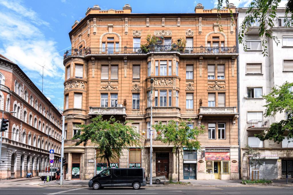 Budapest VIII. kerületében, kiváló lokációban eladó egy napfényes, 127 m²-es, 3 szobás + félszobás, amerikai konyhás lakás egy 1898-ban épült, gondosan karbantartott, liftes ház 1. emeletén.