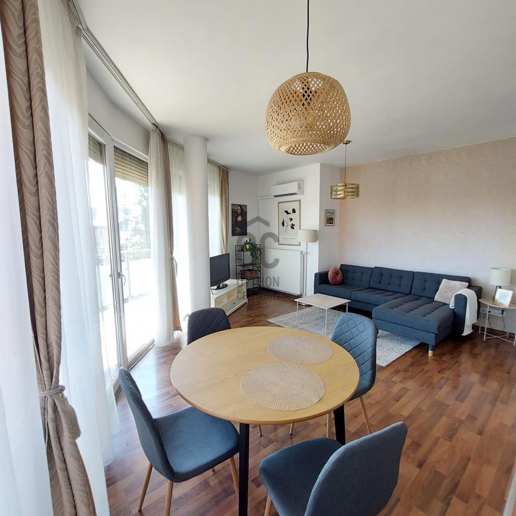 Eladásra kínálunk egy 75 m²-es, 3 szobás, 2 fürdőszobás, világos és csendes lakást, egy 2010-ben épült, modern társasház 8. emeletén. Az ingatlanhoz nagy méretű erkély tartozik, ahonnan panorámás kilátás nyílik.