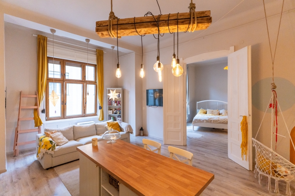 Fektessen be a jövőbe egy kivételes ingatlanba a Budapest 08. kerületének szívében, a Corvin negyedben! Ez a használt lakás nem csupán egy új otthon, hanem egy remek befektetési lehetőség is, amelynek alapterülete 77 négyzetméter. Az ingatlan kettő tágas szobával s egy amerikai konyhás nappalival rendelkezik, melyek kiválóan alkalmasak akár családi életre, akár bérbeadásra, így biztosítva Önnek a folyamatos jövedelemforrást. A lakás állapota kiváló, így azonnal költözhető, nem igényel komolyabb felújítást. A fűtés gázkonvektoros, míg a nyári hónapokban a klímaberendezés gondoskodik a kellemes hőmérsékletről. A Corvin negyed Budapest egyik legdinamikusabban fejlődő területe, ahol a modern városi élet minden előnye megtalálható. A környék ellátottsága kiváló, hiszen számos üzlet, étterem és kávézó várja az itt élőket és a látogatókat. A közeli Corvin Pláza nem csupán vásárlási lehetőségeket kínál, hanem kulturális programoknak is otthont ad, így mindig van mit csinálni a környéken. A közlekedés szempontjából is ideális helyszín, hiszen a környéken több busz- és villamosmegálló található, amelyek gyors és kényelmes kapcsolatot biztosítanak Budapest többi kerületével. Az M3-as metróvonal közelsége lehetővé teszi, hogy a város bármely pontja könnyedén elérhető legyen, így a mindennapi ingázás is egyszerűvé válik. A Corvin negyed biztonságos és csendes, ideális választás mindazok számára, akik a nyüzsgő városi élet mellett mégis szeretnének egy nyugodt otthont. Ez az ingatlan nem csupán egy lakás, hanem egy lehetőség, hogy részesedjen Budapest fejlődéséből. A befektetők számára különösen vonzó lehet, hiszen a környék folyamatosan emelkedő ingatlanárakkal büszkélkedhet, így a jövőbeni értéknövekedés biztosítja a biztonságos befektetést. Ne habozzon, hiszen egy ilyen lehetőség ritkán adódik! Amennyiben kérdései merülnének fel, vagy szeretné megtekinteni ezt a kivételes ingatlant, bizalommal kereshet minket. Szívesen állunk rendelkezésére, hogy segíthessünk a legjobb döntés meghozatalában. Az Ön elégedettsége és bizalma a legfontosabb számunkra! Hibás hirdetés bejelentése