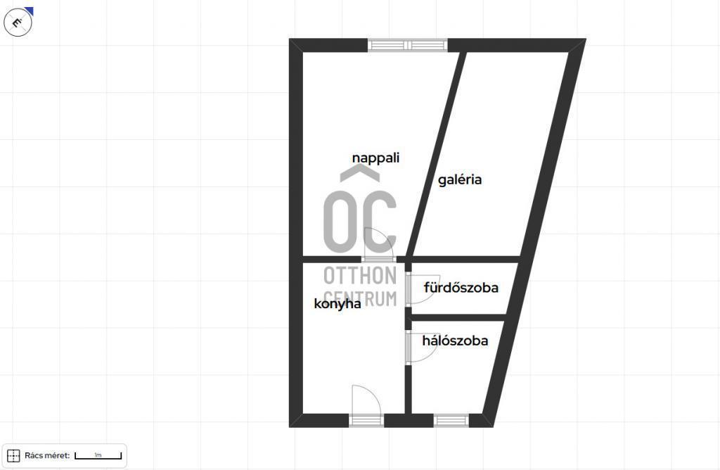 Elrendezés: előszoba – konyha – innen nyíló fürdő, tároló és nappali