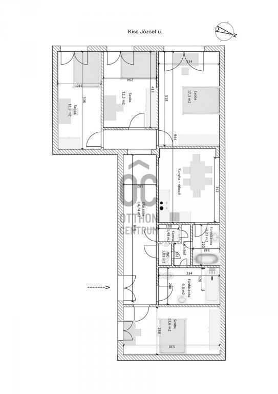 Eladó egy 98 m²-es, teljeskörűen felújított, modern lakás a Kiss József u. 12. szám alatt, mely azonnal költözhető és hosszú távú bérbeadásra is ideális.