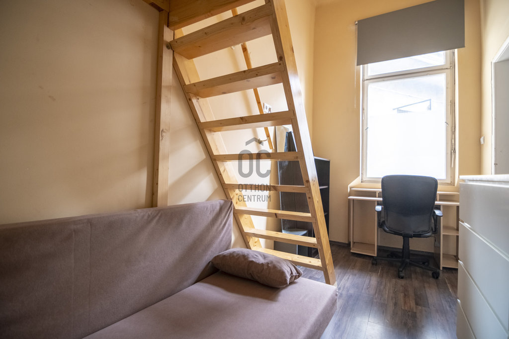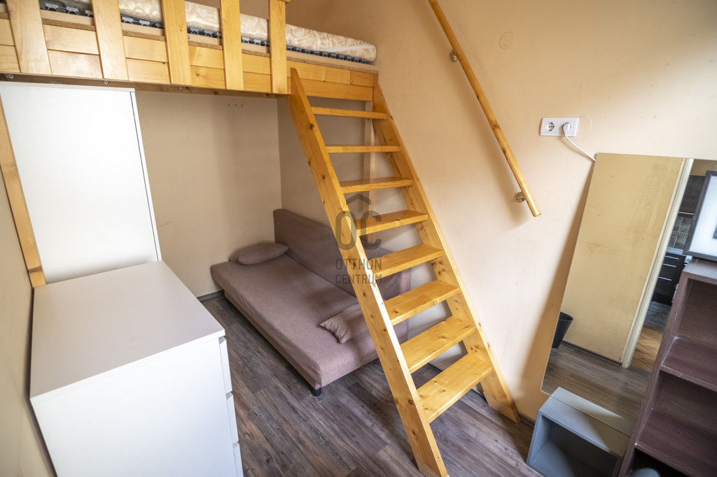 A lakás jelenlegi kialakítása szerint a 24 m2-es nappali mellett 4 külön bejáratú kis szoba található, amelyből 3 galériával rendelkezik. Külön konyha, fürdő, WC.