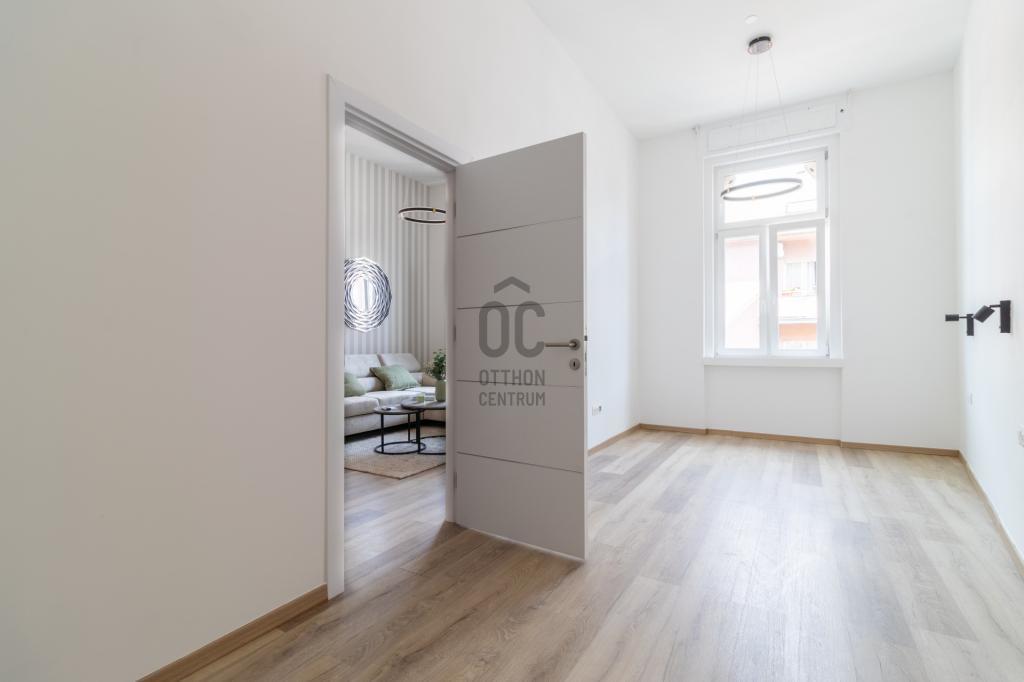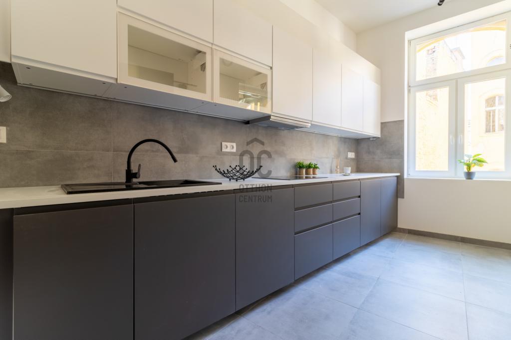 A Kálvin tértől egy perc sétára, a Baross utca elején található ez a teljes körűen felújított, 3. emeleti, liftes, 3 szobás, 80 m²-es (tulajdoni lapon 78 m²-es), prémium kivitelezésű lakás. A folyamatosan karbantartott polgári házban lévő ingatlanban új elektromos- és vízvezetékek, háromrétegű nyílászárók, padlófűtés és okosotthon rendszer biztosítják a kényelmet. A belsőépítész által megálmodott dizájn, az egyedi gépesített konyha, valamint az igény szerint elérhető bútorzat modern, stílusos életteret kínál. A lakáshoz saját, zárható tároló is tartozik, és azonnal költözhető.