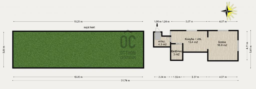 36 m²-es, 1 szobás, jól alakítható alaprajz