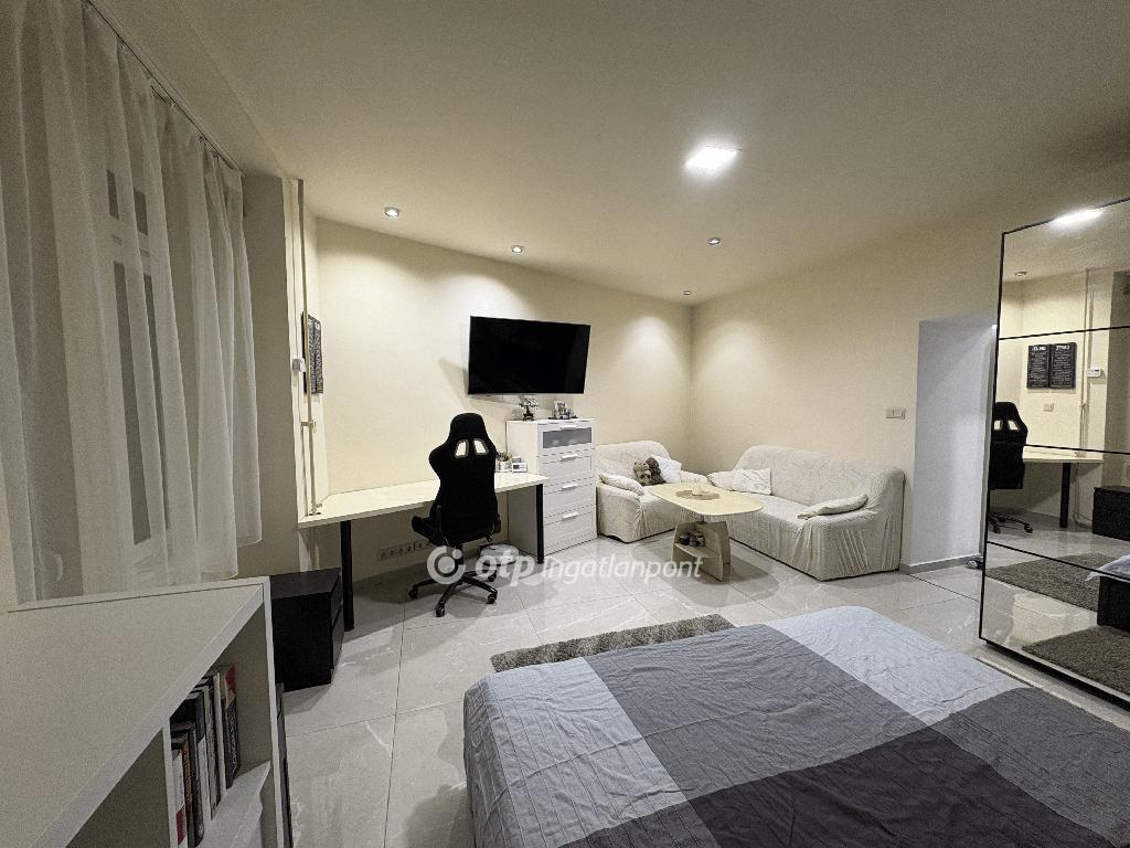 A felújítás során minden víz- és villanyvezeték cserére került, új burkolatok készültek, valamint háromrétegű műanyag nyílászárók biztosítják a kiváló hő- és hangszigetelést. A tágas szoba, a gépesített, magasfényű konyha és az igényes fürdőszoba kényelmes, otthonos életteret nyújtanak.