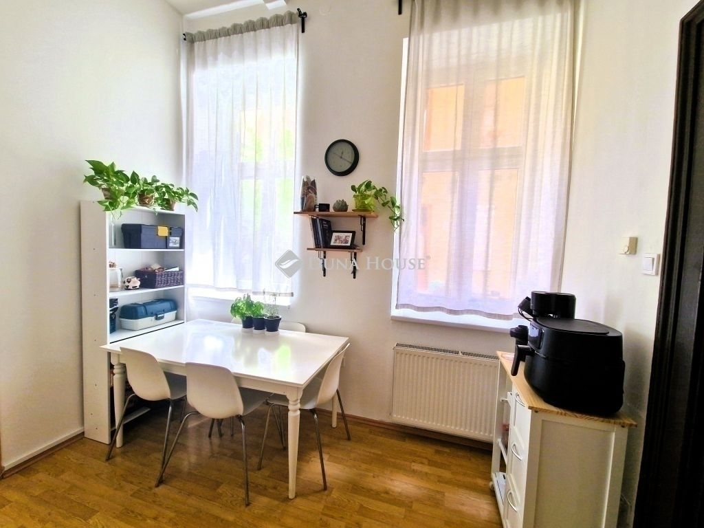 Stílusos, teraszos otthon a megújult Belső-Ferencvárosban igényesen felújított társasházban!Eladó egy 60 m²-es + 8 m² saját terasszal rendelkező lakás Belső-Ferencváros szívében. A lakás egy 1900-ban épült, 2007-ben teljeskörűen megújított, szigetelt tégla társasház földszintjén található, kulturált lakóközösséggel, ahol a nyugalom és biztonság garantált.Főbb jellemzők:Alapterület: 60 m² + 8 m² saját terasz (összesen 68 m²)Saját terasz és hangulatos belső kertre néző nappaliBelmagasság: 360 cm elegáns, tágas térérzetFelújítás: új nyílászárók (3 légkamrás ablakok), új bejárati ajtó, felújított gáz cirkóÁtlagos rezsi: kb. 25.000 Ft/hóKözös költség: 14.000 FtHelyiségek:Előszoba, fürdőszoba WC-vel, hálószoba, amerikai konyhás nappali, saját terasz.Műszaki felszereltség: Gáz cirkó fűtés (4 éve felújítva, rendszeresen karbantartva) Elektromos fűtőpanel ideális a nagy belmagasság miatt Modern konyha: elektromos sütő, szagelszívóhoz külön kivezetés előkészítveLokáció belváros nyugalommal:Üllői út zaja nem hallatszik csendes lakókörnyezet1-2 perc sétára: Ferenc tér futópályával, parkok, zöldövezet5 perc séta: M3 metró, 4-6 villamos, Semmelweis EgyetemKözelben: Aldi, Lidl, Spar, Corvin PlázaMiért különleges?Ez a földszinti, teraszos lakás ritka lehetőség a környéken: egyszerre biztosít belvárosi elérhetőséget, zöld környezetet és kulturált lakóközösséget. Ideális fiatal pároknak, első otthon keresőknek, egyetemistáknak vagy befektetőknek is.Ne hagyja ki ezt a lehetőséget hívjon, és nézze meg személyesen!