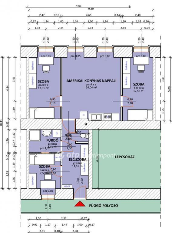 72 nm-es téglaépítésű lakás