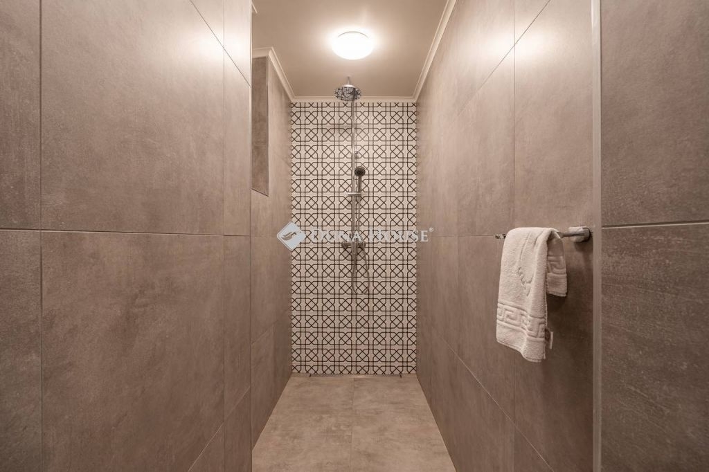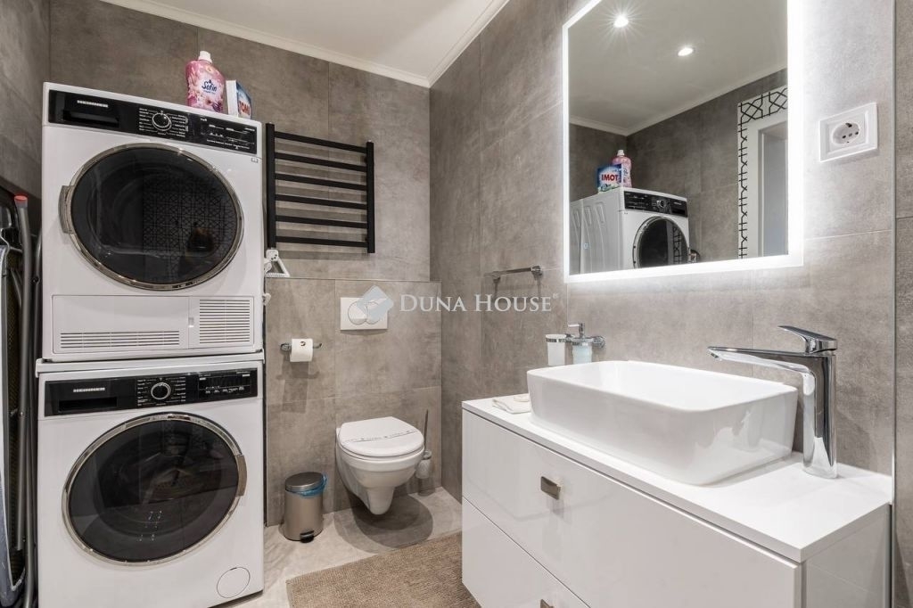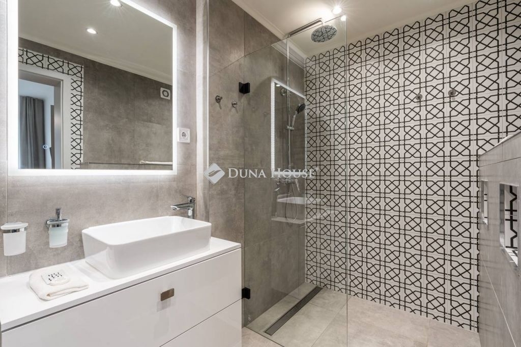 A magas minőségű burkolatok, egyedi beltéri ajtók és modern berendezések elegáns hangulatot teremtenek.