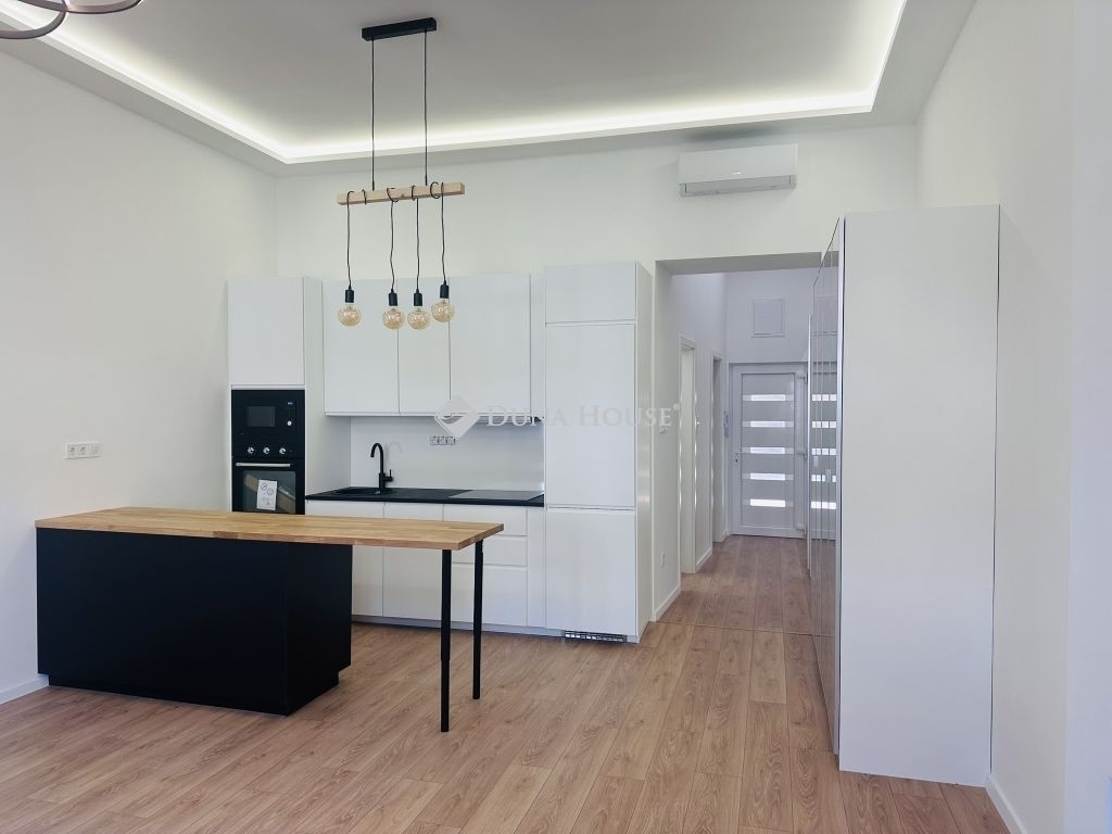 IX. KER. SZÍVÉBEN, MODERN, FRISS PRÉMIUM LAKÁS!Budapesten, a IX. kerület Rehabilitációs részén, a Mester utca és Bokréta utca sarkán eladó egy 56 nm-es prémium, frissen és teljes körűen felújított, gépesített és bútorozott, kulcsrakész 2 szobás + gardrób szobás prémium lakás.A ház:Egy szépen karbantartott társasház, két sarokra a körúttól, a Duna parttól és pár lépésre a Ferenc tértől ahol egy park, futópálya, kondipark várja használóit és a megpihenni vágyókat, számtalan kávézó, étterem, pékség környezetében. A házban nemrég felújított lift segíti a közlekedést.A lakás:A lakásban augusztus végén kezdődtek a munkálatok, a teljes víz és elektromos hálózat cseréje, a helyiségek kialakítása, burkolás, villanyszerelés, vízszerelés. A munkálatok befejezése után kapja mega végleges képet, teljesen gépesítve, bútorozva. A lakás végleges kialakítása után egy amerikai konyhás nappali, egy nagy hálószoba melyből átjárás egy gardrób szobán keresztűl a fürdőszobába képet kapjuk melyíekhez még tartozik egy külön, vendég wc is az előszobában. A jelenlegi képek az elmúlt 2 év 6 db lakásának az elkészült, referencia képei, de nemsokára elkészülnek a végleges arculattal és felszereléssel megegyező látványtervek.A lakás várható átadása 2025 december.Környék:Hihetetlen hangulata van a környéknek, igazi belvárosi de közben egy kicsit budai érzést varázsolnak az épületek, a Duna part közelsége, a kávézók, éttermek a Ferenc téren és a sétálós Tompa utcában. A közlekedés kiváló, számtalan busz, villamos, a 3. metró megállója és éjszakai járatok séta távolságra vannak.Budán a tavalyi évben két hasonló projektet végzett a beruházó és 2 hónap alatt mind a két-két lakás elkelt, érdemes hamar megtekinteni és lépni, mert ez sem lesz sokáig szabad.