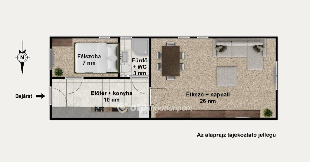 Alapterület: 43 nm (1+1 szoba)
