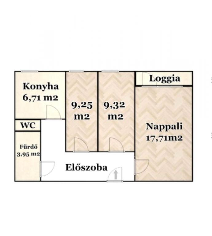 -Elrendezés: 3 szoba, külön fürdő és WC