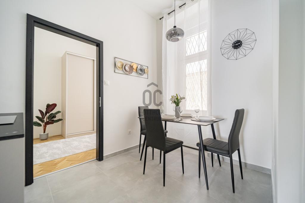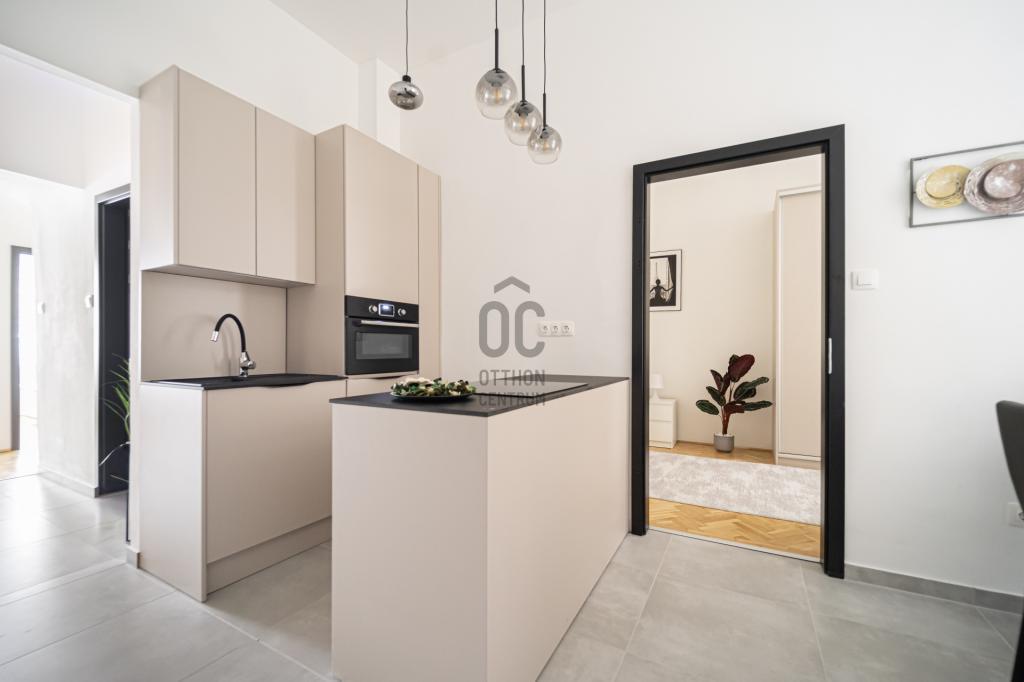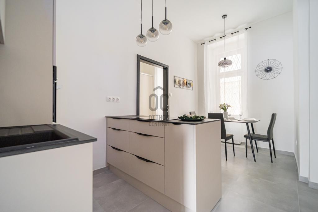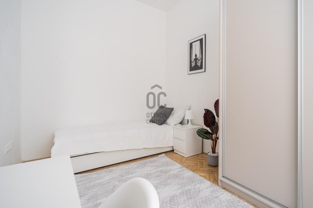 Ebbe a frissen megújult otthonba belépve azonnal megérzed azt a gondosságot és szeretetet, amellyel minden részletet újragondoltak. A magas terek levegőssé teszik a lakást, a felújítás frissessége pedig azt sugallja: itt tényleg csak meg kell érkezni.