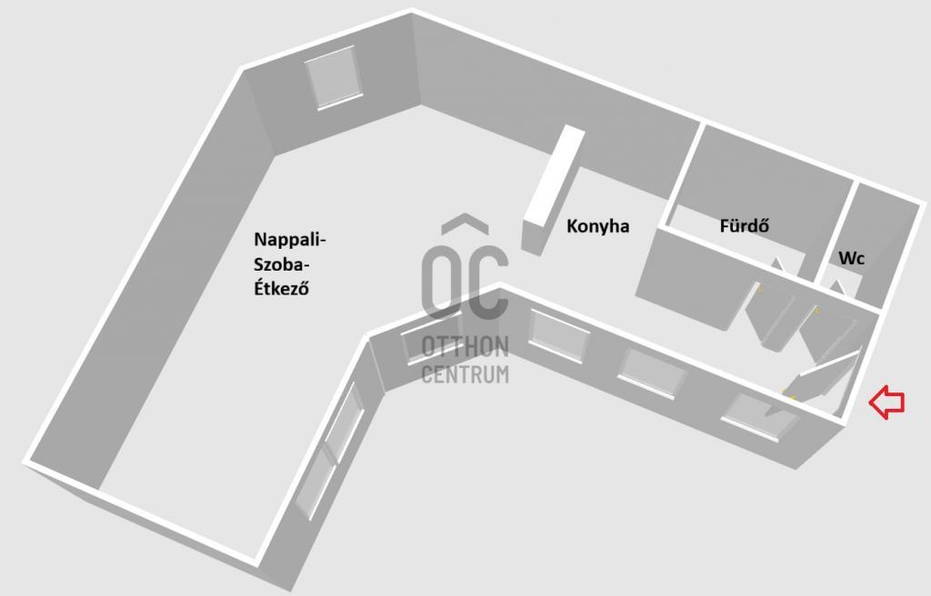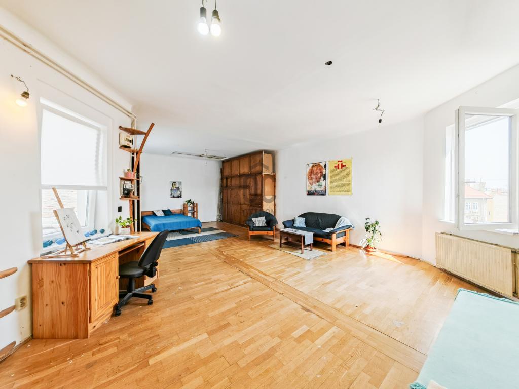 Az ingatlan jelenleg egy tágas, egyszobás elrendezéssel rendelkezik, de átalakítás során, könnyen 1, vagy 2 háló+ nappalis ingatlanná varázsolható, ahol a fürdőszoba is kényelmesen elfér, így ideális lehetőséget biztosít a fiatal párok vagy egyedülállók számára.