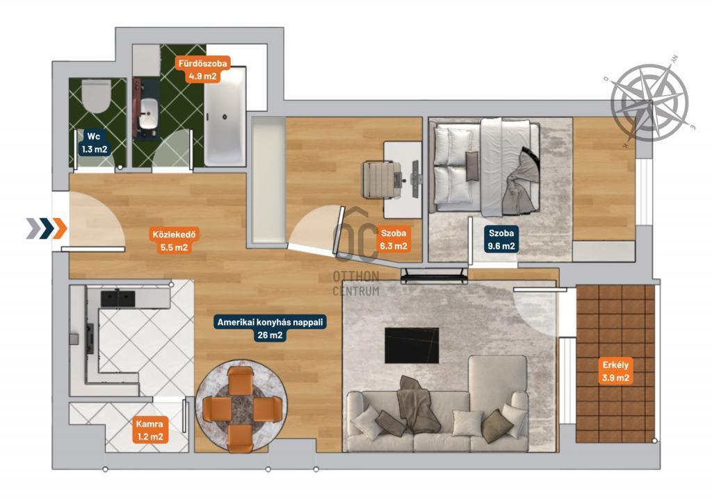️ Tájolása északkeleti, világos és logikusan bútorozható terekkel rendelkezik.