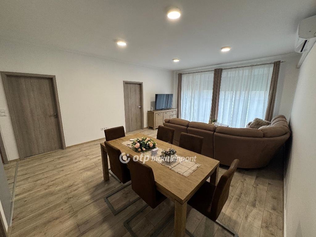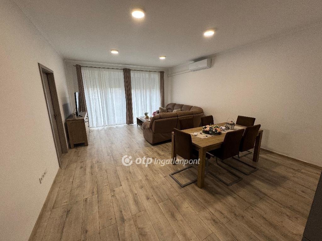 A lakás elrendezése praktikus és élhető: az amerikai konyhás nappali világos, tágas közösségi térként szolgál, mellette két külön nyíló hálószoba biztosít kényelmes életteret. A nappaliból közvetlen kertkapcsolat nyílik a 70 m2-es saját kertre, amely ideális helyszíne lehet családi programoknak, baráti összejöveteleknek vagy akár egy nyugodt reggeli kávé elfogyasztásának is.