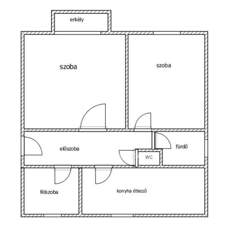 A lakásban két világos, nagyméretű szoba, egy félszoba, egy tágas konyha, fürdőszoba, valamint külön helyiségben található WC kapott helyet. A nagyobb szobához egy hangulatos erkély is tartozik, amely ideális egy reggeli kávé vagy egy nyugodt esti pihenés helyszínéül. A falazat szerkezetének köszönhetően a belső tér igény szerint alakítható, így az ingatlan remek alapot nyújt egy modern, személyre szabott otthon kialakításához.