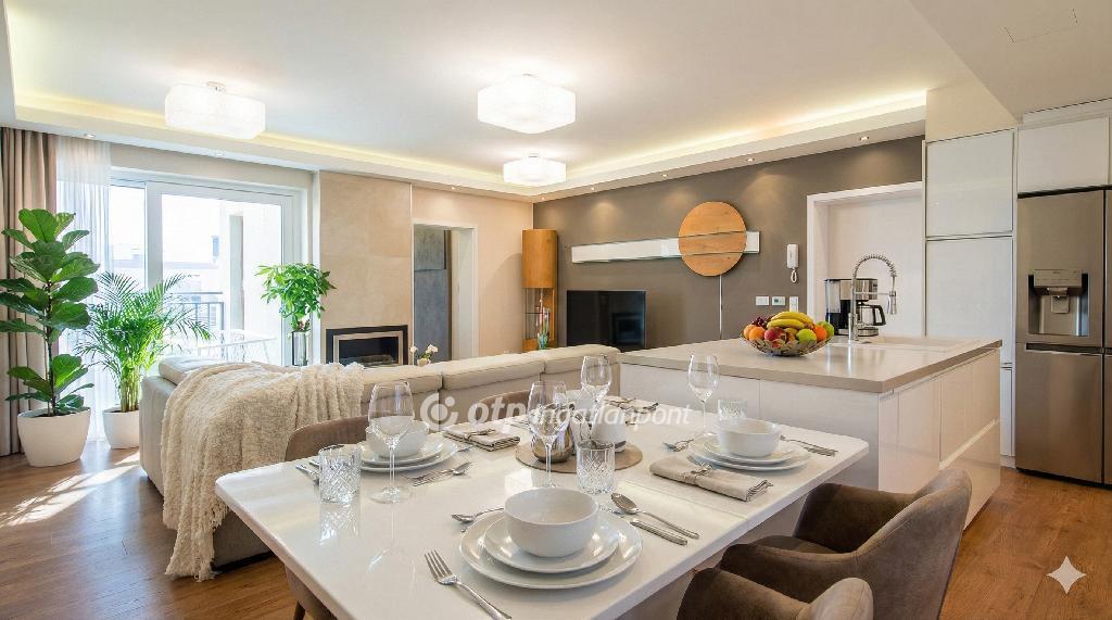 A lakás belső kialakítása modern, elegáns és teljesen bútorozott, így azonnal költözhető, további ráfordítás nélkül.